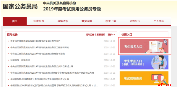 1.考生要認(rèn)真對(duì)待報(bào)名注冊(cè)工作,一步一步走,不要心急,先進(jìn)入國(guó)家公務(wù)員考試專(zhuān)題(http://bm.scs.gov.cn/pp/gkweb/core/web/ui/business/home/gkhome.html)點(diǎn)擊“考生報(bào)名入口”,如下圖。