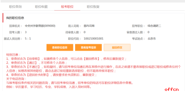 在選完職位要時(shí)刻注意自己的審查結(jié)果,注意查看自己時(shí)候通過審核。報(bào)考人員請(qǐng)于2018年10月22日至11月2日期間登錄考錄專題網(wǎng)站查詢是否通過資格審查。通過資格審查的,不能再報(bào)考其他職位。2018年10月22日8:00至10月31日18:00期間,報(bào)考申請(qǐng)尚未審查或未通過資格審查的,可以改報(bào)其他職位。2018年10月31日18:00至11月2日18:00期間,報(bào)考申請(qǐng)未審查或未通過資格審查的,不能再改報(bào)其他職位。