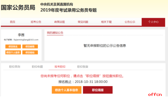 9、詳細(xì)信息填寫完畢后,進(jìn)行具體職位的報(bào)考,如下圖。
