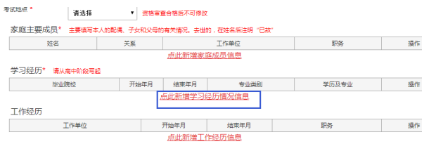 在填寫學習經(jīng)歷時要專門填寫“專業(yè)類別”,很多考生對自己的專業(yè)類別不是很清楚,考生可以根據(jù)自己的學歷情況,選擇相應(yīng)專業(yè)大類,不能確定的填寫其他。