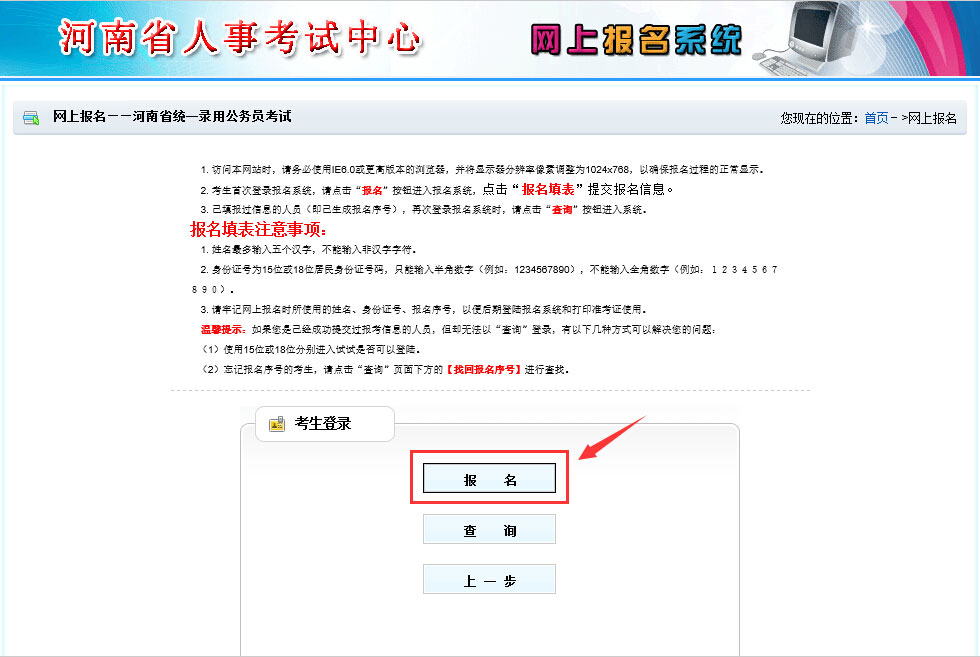 2015年河南公務員考試網上報名入口已經開放,報名時間為9月14日8:00-18日18:00,希望大家不要錯過報名時間。中公教育河南中公網校小編特整理了今年河南公務員報名的流程,以供參考(以河南省直報名為例):