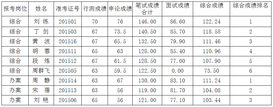 原標題:中共醴陵市紀委、醴陵市監(jiān)察局2015年公開選調(diào)工作人員綜合成績公示(2015年11月8日)