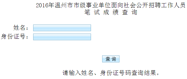 點(diǎn)擊進(jìn)入>>>2016年溫州市市級(jí)事業(yè)單位面向社會(huì)公開招聘工作人員筆試成績(jī)查詢
