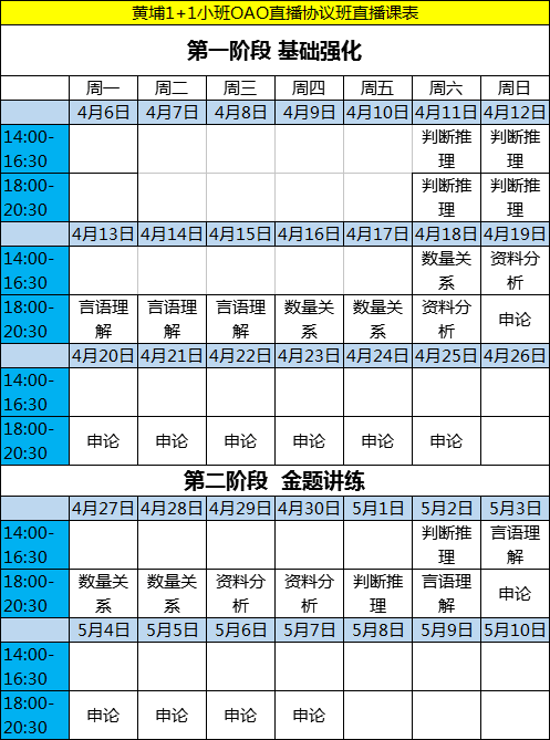 黃埔1+1小班OAO直播協(xié)議班直播課表
