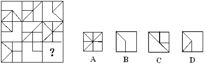 (解答:每行前兩個圖形疊加后,不同的部分就是第三個圖形。正確答案是D。)