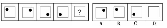 (答案:B。黑點(diǎn)在正方形中順時(shí)針移動(dòng)。在第5個(gè)圖形中,應(yīng)該正好移動(dòng)到左上角。)