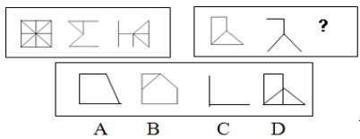 解答:正確答案為C。因?yàn)樵诘谝惶讏D形中的后兩個(gè)圖形疊加在一起正好合成第一個(gè)圖形;在第二套圖形中的問號處如果為C項(xiàng)則與第一套圖形的規(guī)律一致。