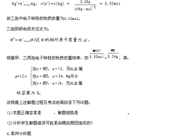 [試題] 甲、乙兩個(gè)電解池均以Pt為電極,且互相串聯(lián),甲池盛有AgNO3溶液,乙池盛有一定量的某鹽溶液。通電一段時(shí)間后,測(cè)得甲池中陰極質(zhì)量增加2.16g,乙池中電極上析出0.24g金屬,則乙池中溶質(zhì)可能是( )