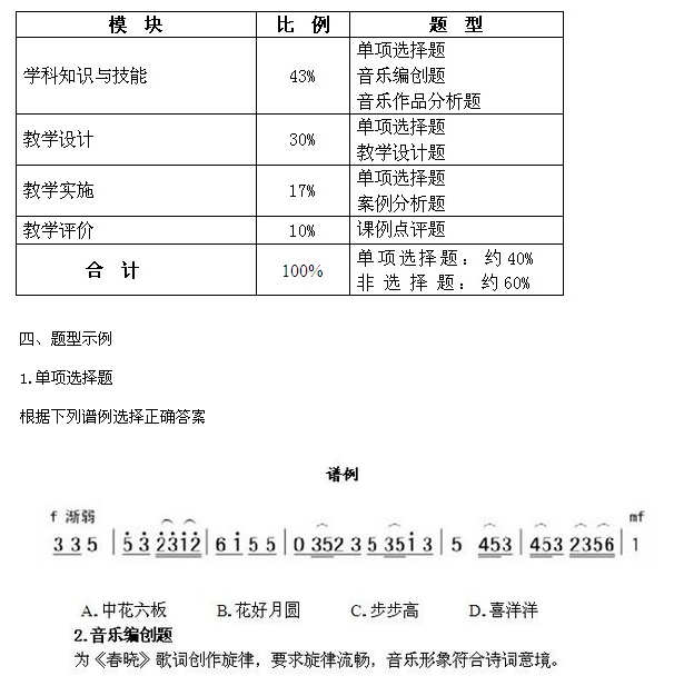 1. 熟知高中音樂課程性質(zhì)、課程理念、課程目標(biāo),掌握《普通高中音樂課程標(biāo)準(zhǔn)(實驗)》所規(guī)定的內(nèi)容與要求,了解世界音樂教育體系。