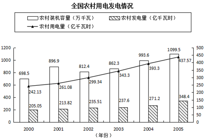 1.2000年至2005年,我國(guó)農(nóng)村發(fā)電量占用電量比重的年份是( )。