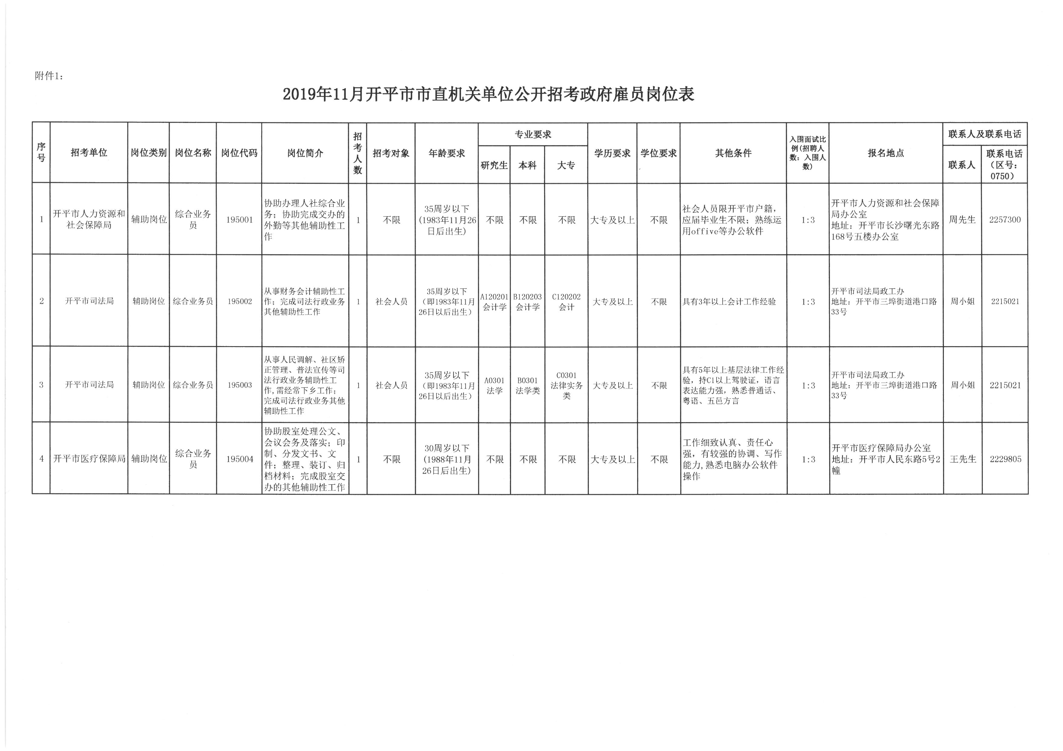 2019年十一月開平市市直機(jī)關(guān)單位公開招考政府雇員崗位表