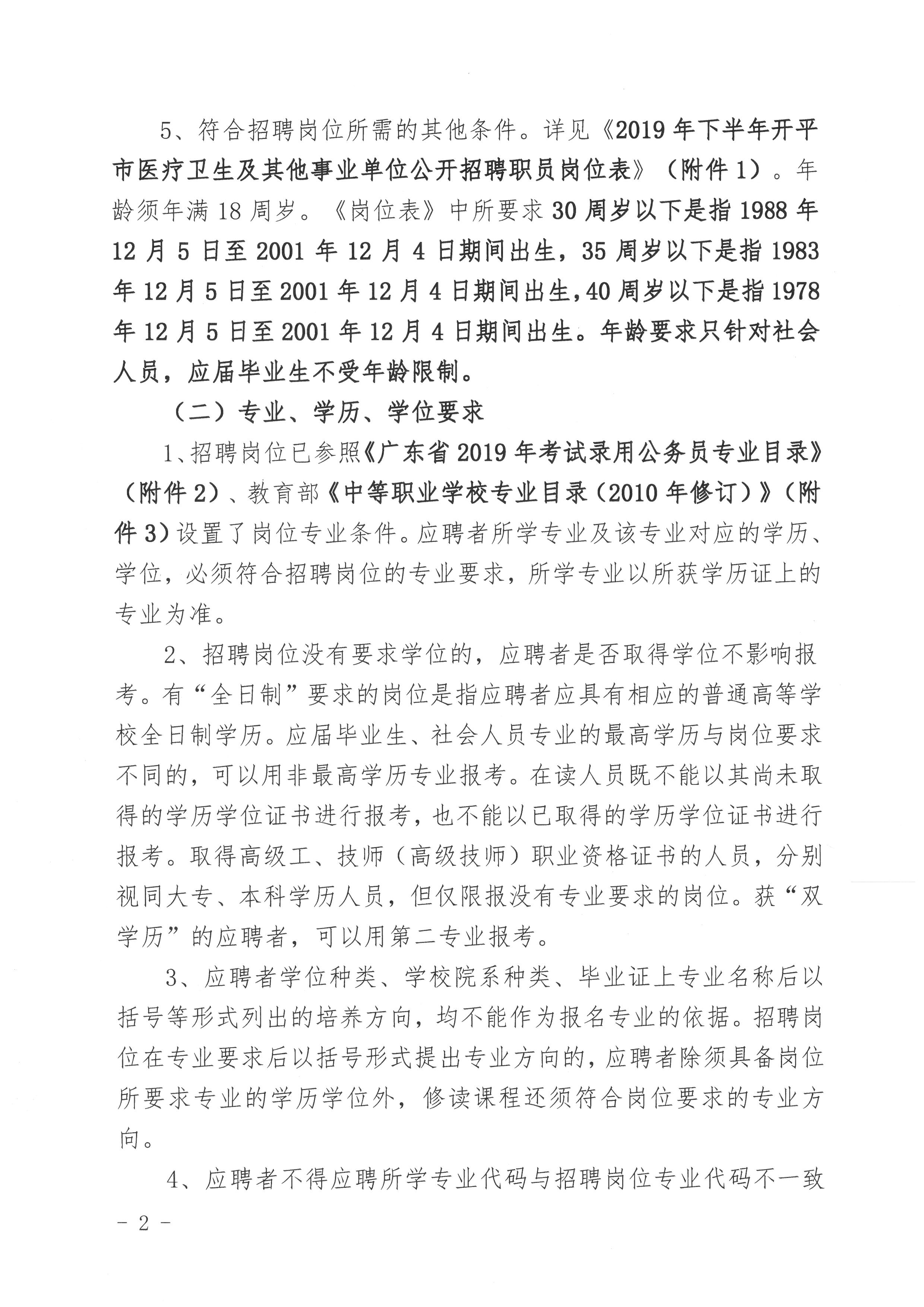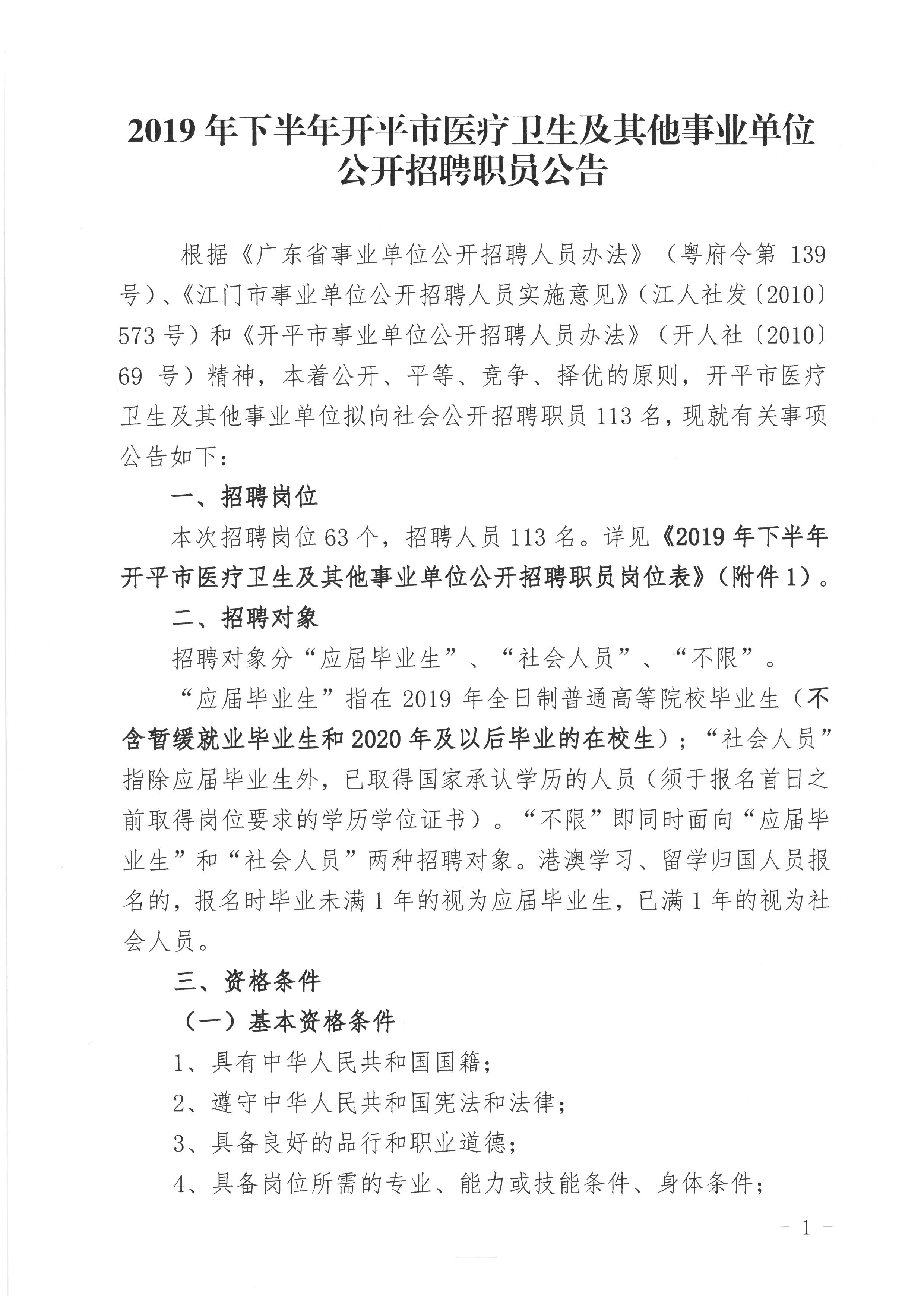 2019年下半年廣東江門開平市醫(yī)療衛(wèi)生及其他事業(yè)單位公開招聘職員113人公告