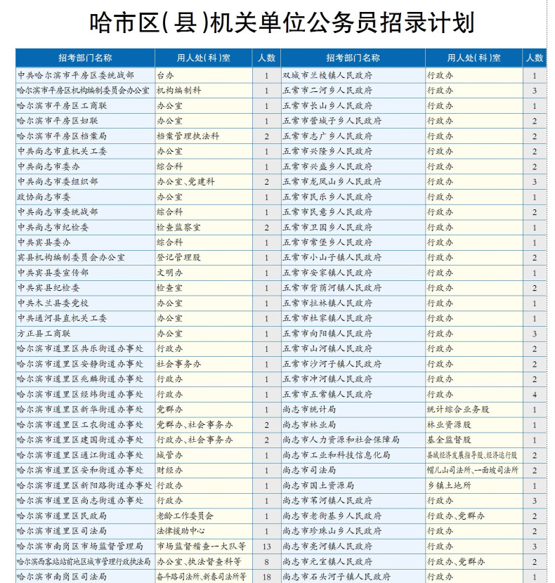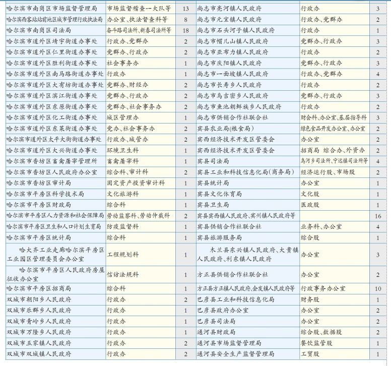 原標(biāo)題:全省縣(區(qū))、鄉(xiāng)(鎮(zhèn))機(jī)關(guān)單位招錄1127名公務(wù)員哈市233個(gè)職位招259人