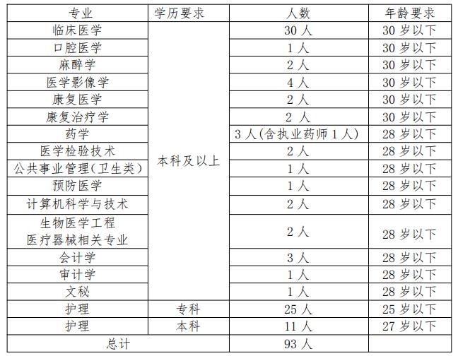 3、高學(xué)歷高職稱(chēng)者年齡可適當(dāng)放寬,優(yōu)先錄用。醫(yī)療相關(guān)專(zhuān)業(yè)往屆畢業(yè)生須有執(zhí)業(yè)證(除2019年畢業(yè)生)、規(guī)培證(2017年以前畢業(yè)生);醫(yī)技相關(guān)專(zhuān)業(yè)往屆畢業(yè)生須有資格證或成績(jī)單;護(hù)理專(zhuān)業(yè)往屆畢業(yè)生須有資格證;
