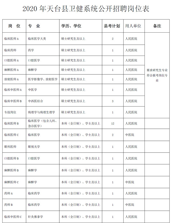 2020年天臺(tái)縣醫(yī)療衛(wèi)生招聘84名公告