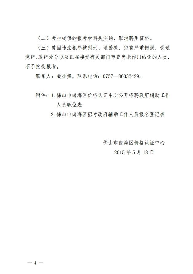 2015廣東佛山市南海區(qū)價格認(rèn)證中心政府輔助人員招聘2人公告