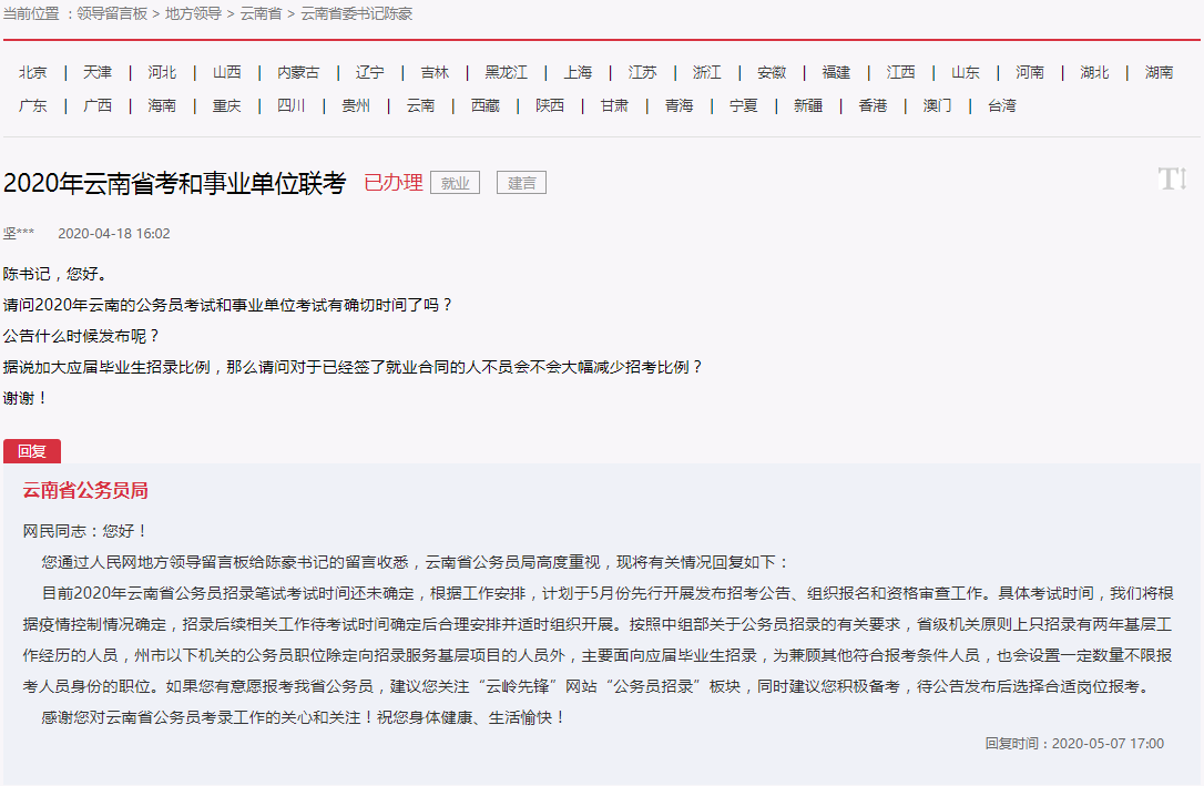 官方發(fā)布2020云南省公務(wù)員考試公告5月份發(fā)布
