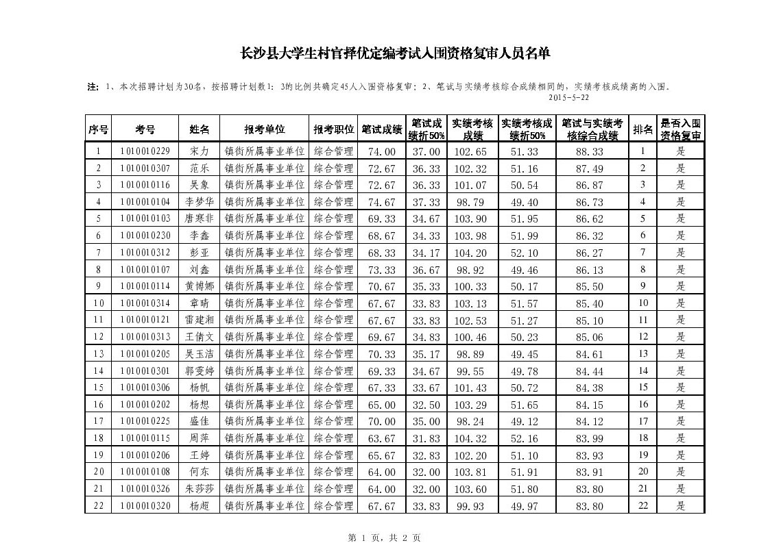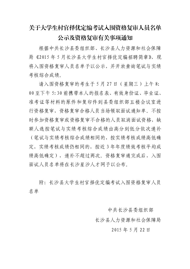 2015年湖南省長沙縣大學生村官擇優(yōu)定編考試資格復審通知