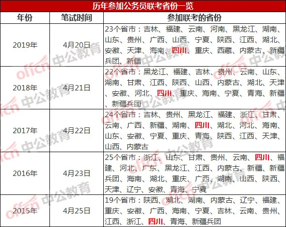 從表中可以看出近五年四川一直是是風雨無阻的參加省考聯(lián)考,這意味著四川今年很大可能也會繼續(xù)參加聯(lián)考。