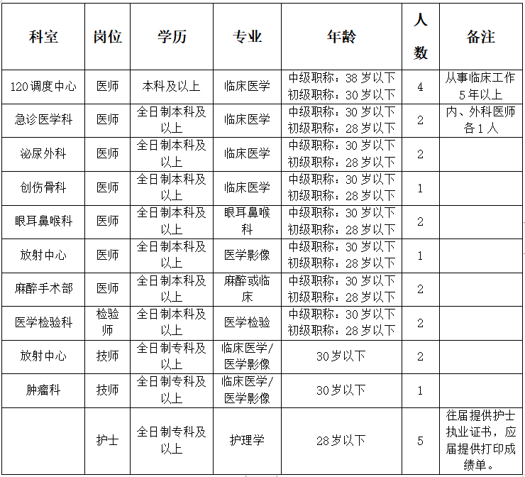 因業(yè)務發(fā)展需要,為適應醫(yī)院發(fā)展形勢,緩解人才需求,進一步做好人才儲備,我院面向社會招聘相關醫(yī)療衛(wèi)生人才若干名?,F(xiàn)將有關事項公告如下: