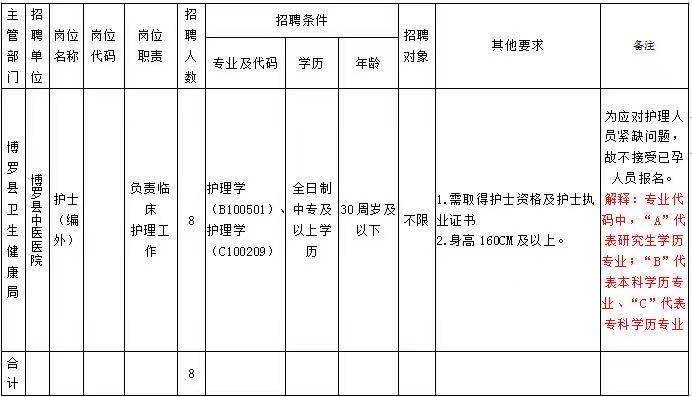 附件1:2021年博羅縣中醫(yī)醫(yī)院公開招聘編外護理人員職位表