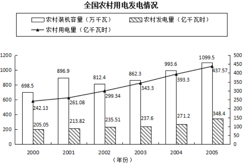 2.根據(jù)上圖,下列關(guān)于我國農(nóng)村用電發(fā)電情況的表述,錯誤的一項是( )。