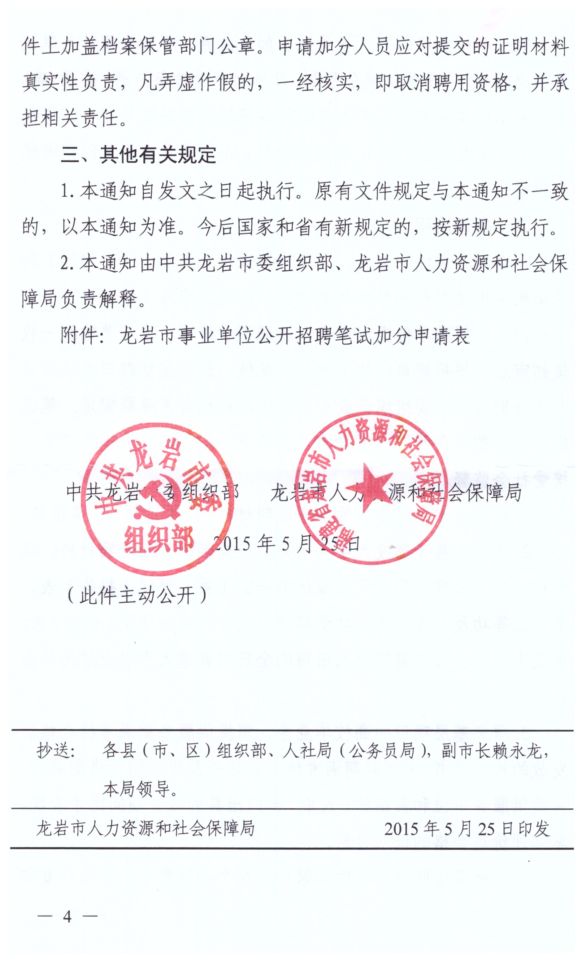 2015福建長(zhǎng)汀縣市直事業(yè)單位招聘筆試加分有關(guān)事項(xiàng)通知