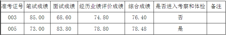 根據《曲靖市人民政府法制辦公室2015年公開遴選公務員實施方案》的規(guī)定,綜合成績構成為:筆試成績占40%,面試成績占40%,經歷業(yè)績評價占20%?,F將曲靖市人民政府法制辦公室2015年公開遴選公務員進入經歷業(yè)績評價人員的筆試、面試、經歷業(yè)績評價、綜合成績及進入考察和體檢人員名單公告如下: