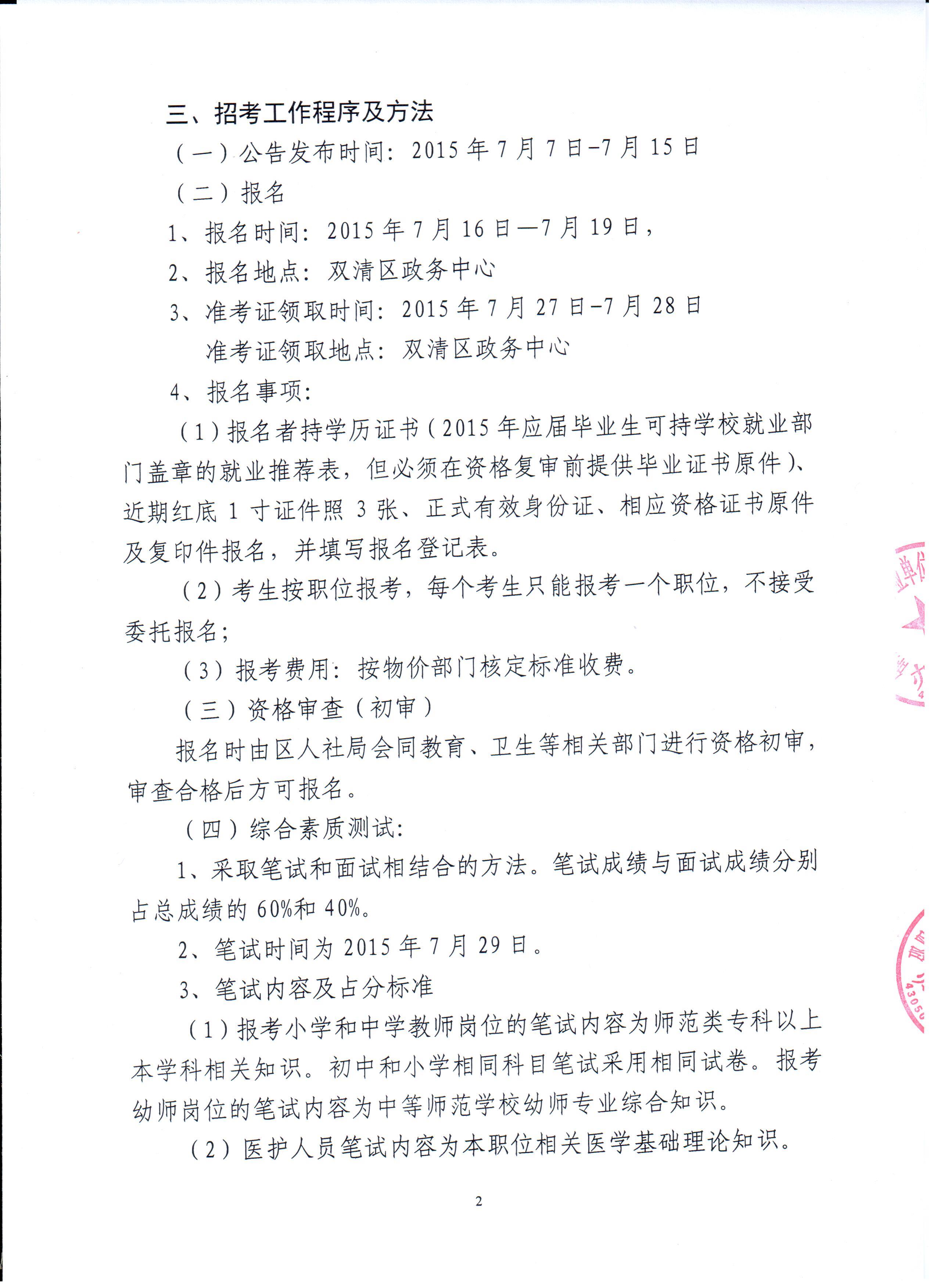 2015湖南雙清區(qū)事業(yè)單位招聘公告【58人】
