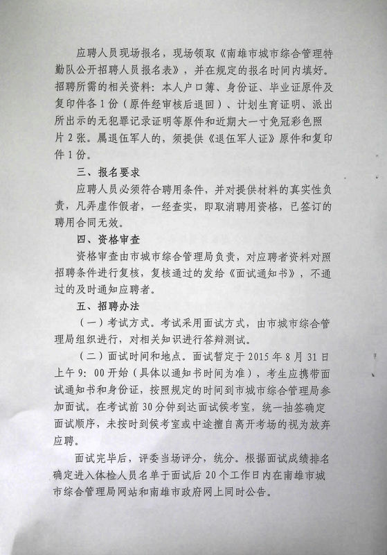 2015廣東南雄市城市綜合管理局招聘城市綜合管理特勤隊隊員30人公告