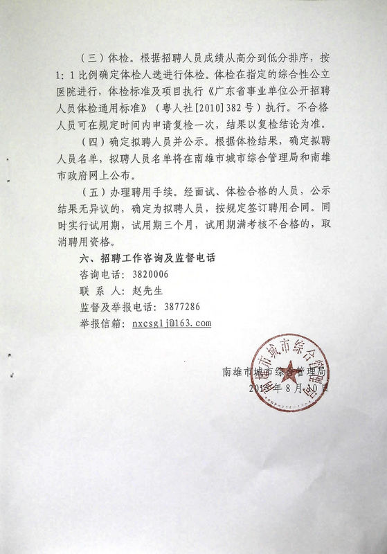 2015廣東南雄市城市綜合管理局招聘城市綜合管理特勤隊(duì)隊(duì)員30人公告
