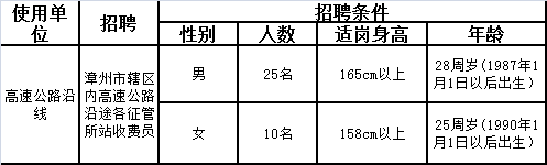 2015福建省高速公路有限責任公司漳州管理分公司招聘35人公告