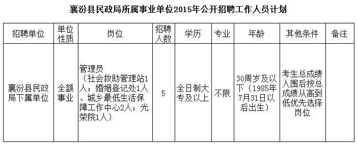 2015山西臨汾市襄汾縣民政局招聘實(shí)施方案