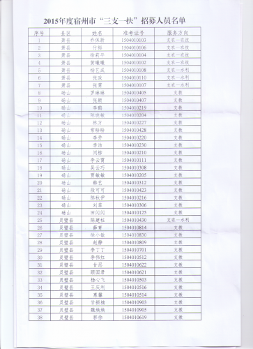 2015安徽蕭縣三支一扶考試招募喬保新等78人通知