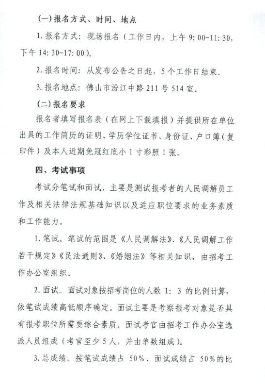 2015廣東佛山市醫(yī)療糾紛人民調(diào)解委員會招聘專職人民調(diào)解員3人公告