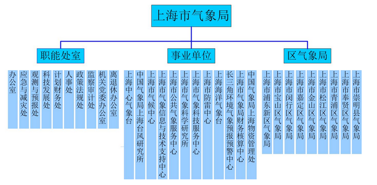上海市氣象局實(shí)行上級(jí)氣象主管機(jī)構(gòu)與本級(jí)人民政府雙重領(lǐng)導(dǎo),以上級(jí)氣象主管機(jī)構(gòu)領(lǐng)導(dǎo)為主的管理體制,在上級(jí)氣象主管機(jī)構(gòu)和本級(jí)人民政府領(lǐng)導(dǎo)下,根據(jù)授權(quán)承擔(dān)上海行政區(qū)域內(nèi)氣象工作的政府行政管理職能,依法履行《中華人民共和國(guó)氣象法》和氣象主管機(jī)構(gòu)的各項(xiàng)職責(zé)。