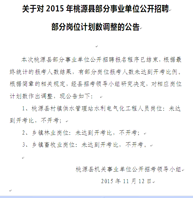 2015湖南桃源縣事業(yè)單位招聘部分崗位計劃數(shù)調(diào)整公告