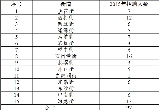 本次招聘社區(qū)居委會專職工作人員97名,每位報考人員只能報考1個街道,報考2個街道或以上的人員將取消考試資格。