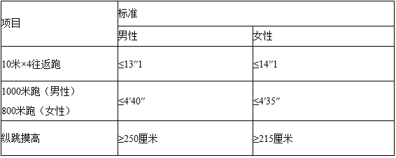 哈密地區(qū)網(wǎng)格化巡邏防控辦公室崗位體能測評由地區(qū)公安局組織實施,體能測評項目及標(biāo)準(zhǔn)如下: