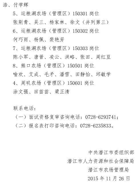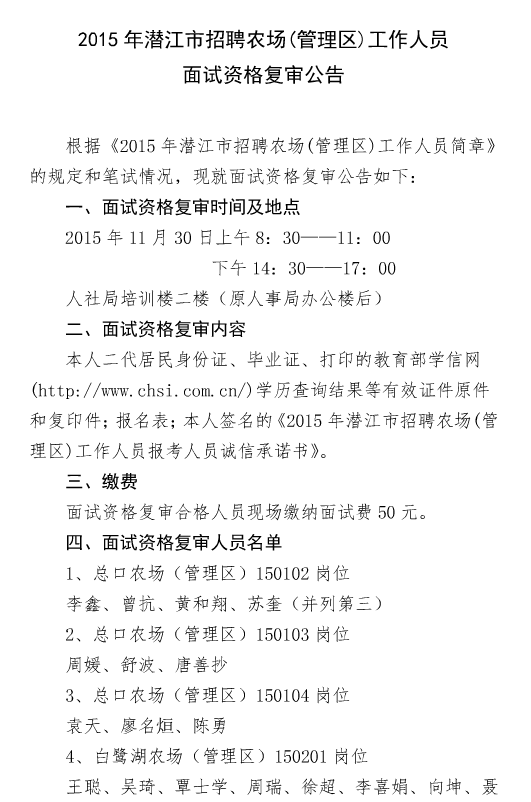 2015湖北潛江市招聘農(nóng)場(chǎng)(管理區(qū))人員面試資格復(fù)審公告