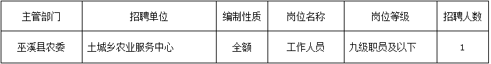 2015重慶巫溪縣事業(yè)單位從轉業(yè)士官中定向招聘1人公告【招1名】