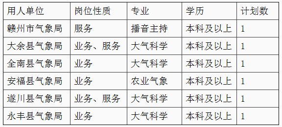 原標(biāo)題:江西省氣象部門2016年全日制普通高校應(yīng)屆畢業(yè)生公開招聘補(bǔ)充公告