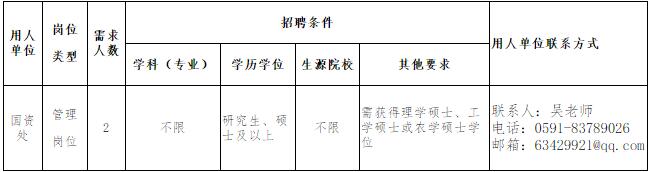 2016福建農林大學國有資產(chǎn)管理處招聘人事代理人員2名公告【招2人】