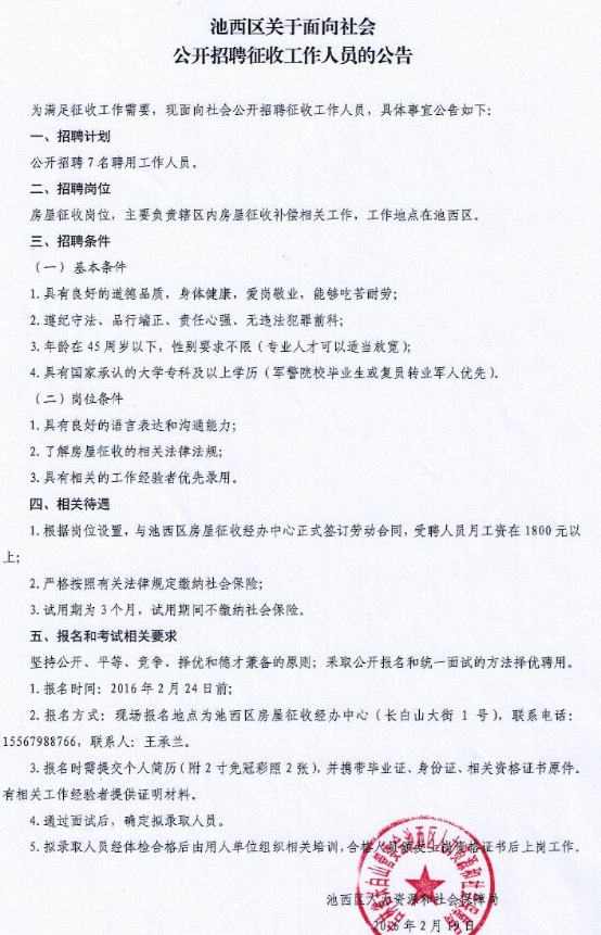 2016吉林長(zhǎng)白山保護(hù)開發(fā)區(qū)池西區(qū)招聘征收人員公告【招7人】