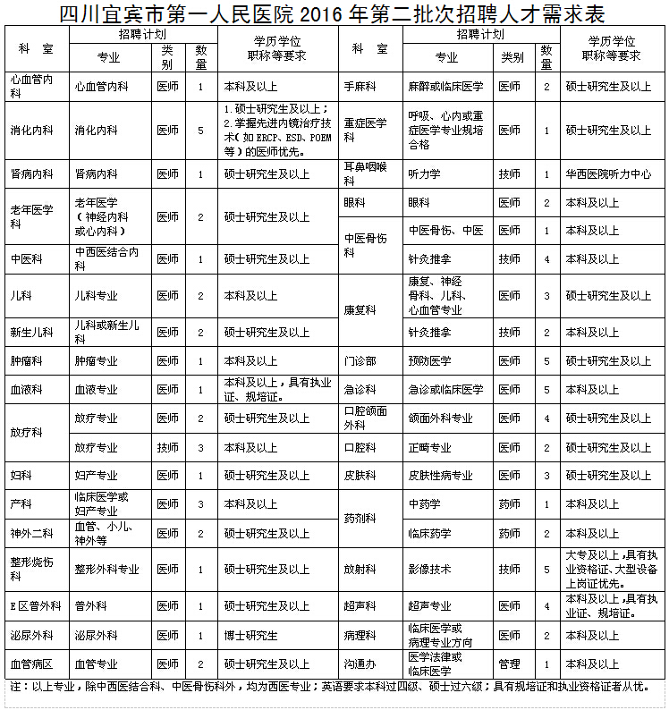 原標(biāo)題:四川省宜賓市第一人民醫(yī)院誠聘各專業(yè)英才
