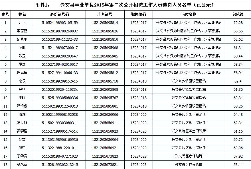 2015四川宜賓市興文縣第二次招聘人員選崗及辦理聘用手續(xù)通知(其他系統(tǒng))