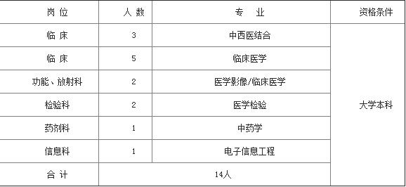 2016陜西漢中市城固縣中醫(yī)醫(yī)院編制外合同制專業(yè)技術(shù)人員招聘公告【招14人】