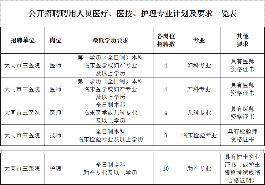 醫(yī)療專業(yè)12人、助產(chǎn)專業(yè)10人、醫(yī)技專業(yè)3人(詳見附件):