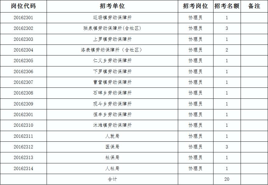 各鎮(zhèn)(鄉(xiāng))就業(yè)和社會公共服務機構(gòu)協(xié)理員共20名。珙縣公開招考基層就業(yè)和社會公共服務機構(gòu)協(xié)理員崗位表: