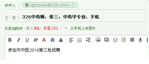 在本公告附件1中下載《廣州市中醫(yī)醫(yī)院2016年第三批公開招聘人員報(bào)名表(報(bào)考崗位及代碼,考生姓名,所學(xué)專業(yè),手機(jī)號(hào)碼)》,于報(bào)名時(shí)間內(nèi)將表格以附件形式發(fā)送至郵箱gkzpyao@126.com報(bào)名。
